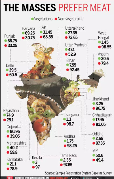 With regards to vegetarianism, it is necessary to address the social politics of meat in India. Meat has played a crucial role in shaping political ideologies, and is especially used by dominant castes to criminalise meat-eating communities. Hindu nationalists have also successfully campaigned for ‘beef bans’, which discriminate against beef eaters and distributors. For many, cows are not only necessary for nutritional needs, but also as major sources of income, particularly for Dalit and Muslim populations.