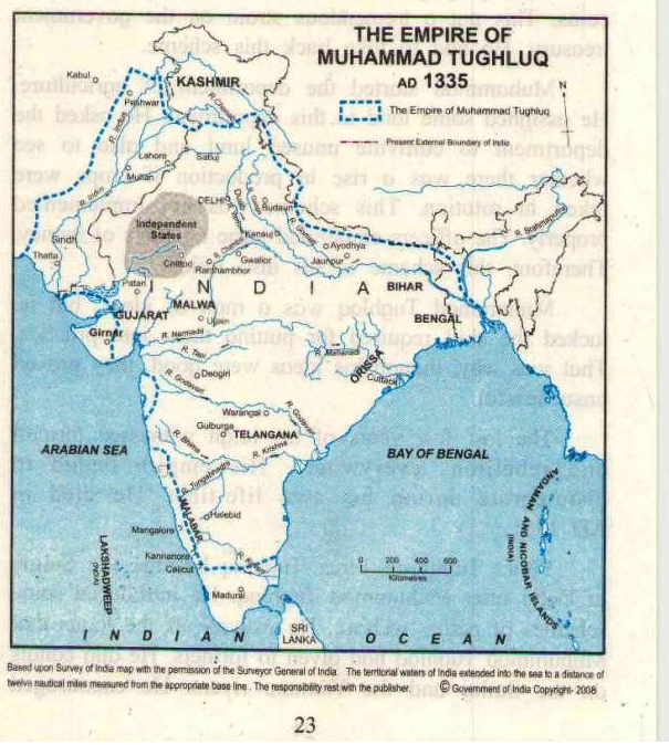 Another noteworthy omission from the revised textbook is a map of the empire of Muhammad-bin-Tughuluq of the Tughuluq dynasty, stretching from Peshawar in the north to Madurai in the south. Any and every element of the textbook that was even slightly suggestive of Afghan rule in India has been subject to censure.