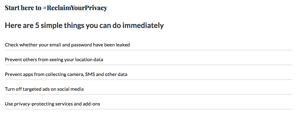 Reclaim Your Privacy’s five steps to protecting privacy online. | Source.