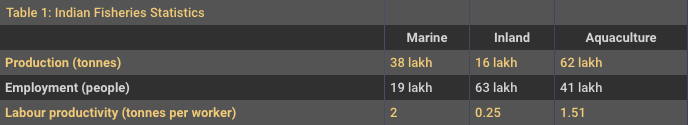 Roughly 120 lakh people derive livelihoods from Indian fisheries (Table 1). A commonplace assumption holds that most of these are poor, “backward”, and in need of “upliftment”. Meanwhile, total annual fish production has more than quadrupled over the last three decades, from 29.6 lakh tonnes in 1988, to 125.9 lakh tonnes in 2018. Much of this growth stems from an aquaculture boom since the 1980s.
