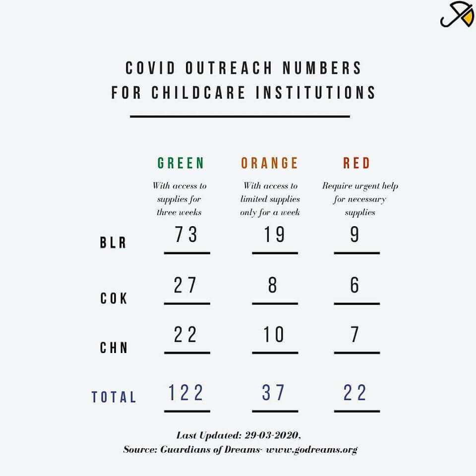 Guardians of Dreams, a Bangalore based non-profit recently conducted a COVID Outreach which revealed that several Child Care Institutions like orphanages and shelter homes which provide care and protection to the most vulnerable children have been hit badly due to this crisis. Most of these Institutions rely on regular or one-time donors, and the COVID lockdown has taken away both these sets.