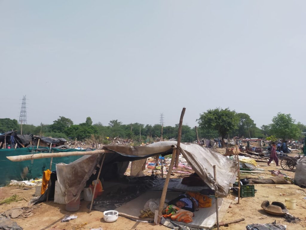 Featured image: People residing in temporary shelters after the demolition drive in Ramesh and Lalita Park in New Delhi in July of this year; courtesy of Dev Pal.