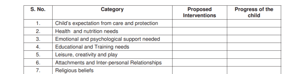 In such a situation, one option would be to strictly follow an ‘Individual Care Plan’. These are comprehensive plans for the child listed in Form 7; it is to be followed in the interest of reforming a child holistically. It highlights what the child would need in terms of psychological and educational help, amongst others: