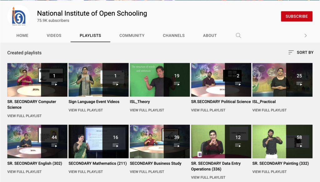 On the same lines, the ‘special content’ for hearing-impaired learners is limited to a single sub-section of the NIOS Youtube channel (pictured below). The channel exclusive deals with secondary education and has no primary education content. On the other hand, however, the channels do have a series of instructional yoga videos that are taught via sign language.