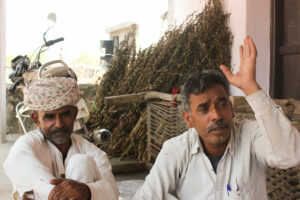 The two villages of Rooppura and Dhuala have many such pasturelands adjoining their villages where small herds of goats feed on desi babul. “Our survival is dependent on the chargah (common pastureland),” says Bhag Chand Gujjar. “Where else would we take our cows, buffaloes and goats to graze?â€? Bhag Chand is a resident of Rooppura, and also a member of a dairy cooperative, like many others from the village. Most of the population here depends on the cultivation of cotton, jowar, groundnuts, or upon livestock rearing.