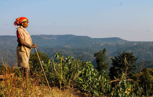 Featured image of a tribal woman in a forest, courtesy of Survival International.