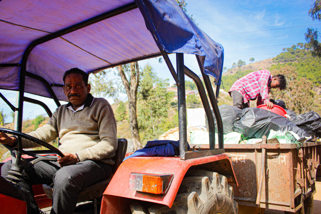 It’s a busy intersection at Himachal Pradesh’s Palampur. In the backdrop of this town, the Himalayas stand tall adorned with the winter’s snow, and at the intersection in the morning, HRTC buses make brief stops letting passengers off and on. Against this daily bustle of vehicles and opening up of shops, a peculiar vehicle stands out. It is difficult to miss. A three-wheeler, it is mostly yellow, with two separate bins trailing behind it. The contents in each bin are defined by its colour—green for wet waste, and blue for dry.