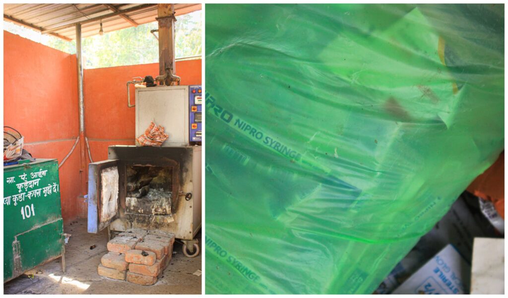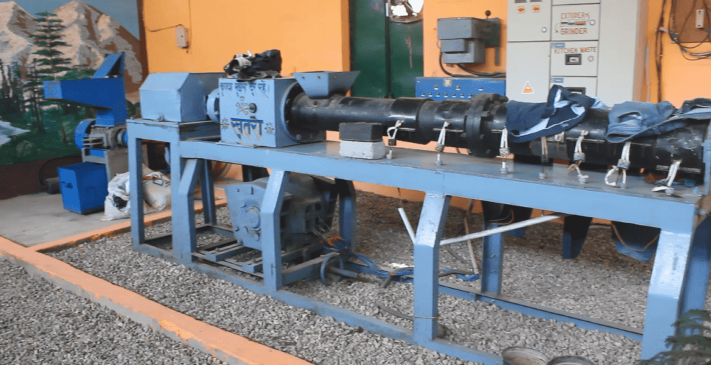 Bio-medical waste and sanitary pads are incinerated by the incinerator, while plastic material is ground into granules by a granulator. Most interestingly, a binder is expected to convert plastic powder into bricks!
