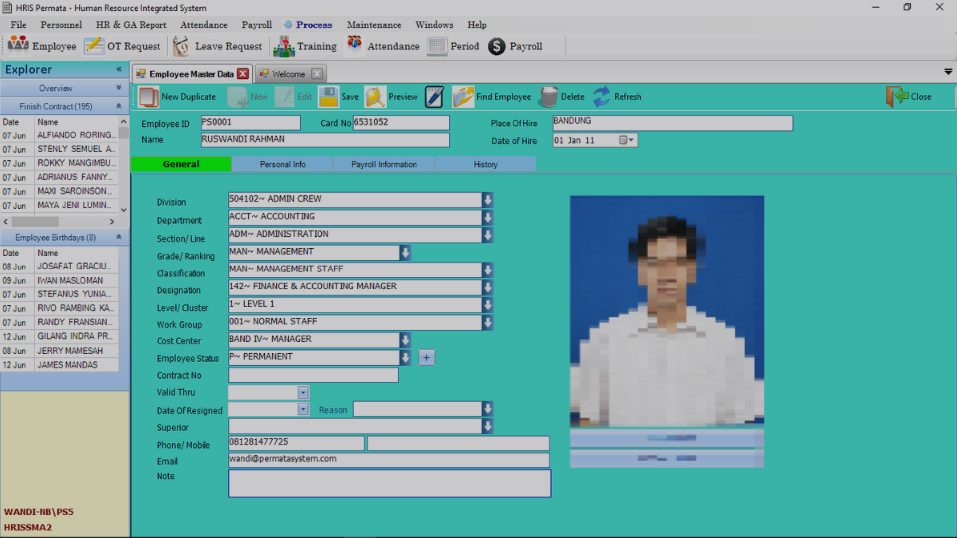 Representational featured image of an employee’s master data on a company’s human resources data management portal, courtesy of HRIS Permata on Wikimedia Commons.