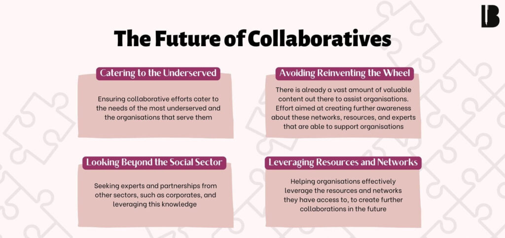 It is vital to consider and incorporate these learnings and experiences in everyday practices to sustain the impactful work organisations are engaged in. Collaboratives are not easy to get right, but when implemented effectively, they can be a hugely impactful tool for organisations. While many of us, especially in the non profits space, have set up crisis-response style collaboratives in recent years that serve the need of the hour, let us seek to incorporate this tool in the long-term too.